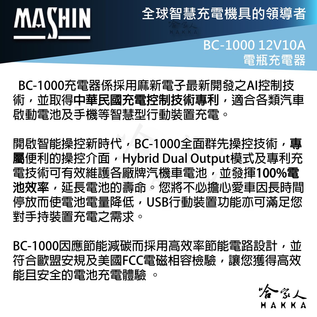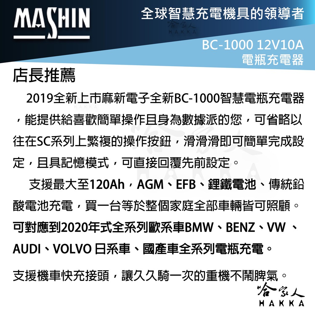 麻新電子 BC 1000 汽機車全自動電池充電器 免運贈百元 好禮四選一 EFB AGM 鋰鐵 充電機 BC-1000