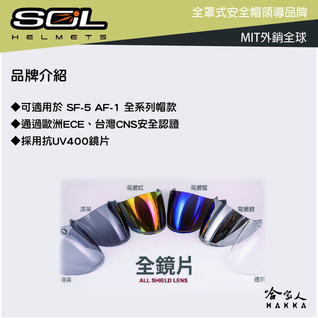 SOL SF-5 AF-1 專用鏡片 大鏡片 透明鏡片 暗色 電鍍鏡片 SF5 AF1 巴比倫 抗uv 安全帽 哈家人