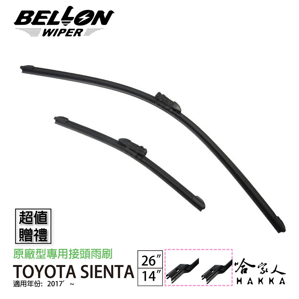 BELLON SIENTA 16-20年 專用接頭雨刷 【免運贈雨刷精】 TOYOTA吸煙塔 26 14吋 軟骨 哈家人