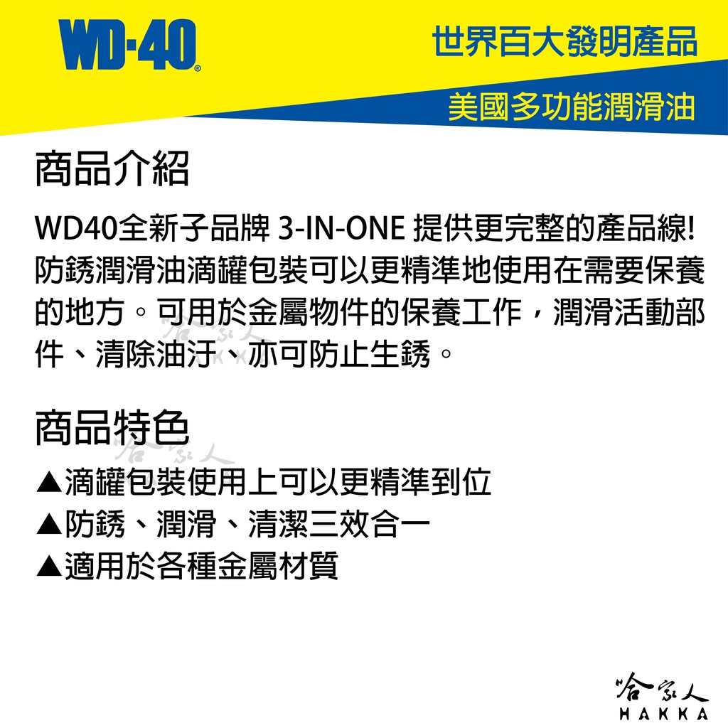 WD40 3-IN-ONE 防銹潤滑油 附發票 高級針車油 防鏽潤滑油 防鏽油 自行車 剪刀 縫紉機 保養 哈家人
