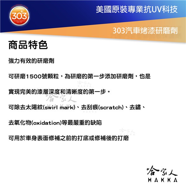 美國原裝 303 汽車烤漆研磨劑 粗蠟 粗蜡 打蜡 打蠟 上蜡 研磨劑 去瑕疵 傷痕 烤漆 螺旋紋 太陽紋 刮痕 哈家人