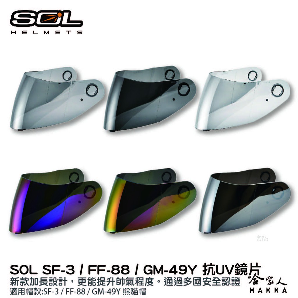 SOL SF-3 FF-88 GM-49Y 大鏡片 透明鏡片 暗色 電鍍鏡片 電鍍藍 電鍍銀 專用鏡片 抗UV 哈家人
