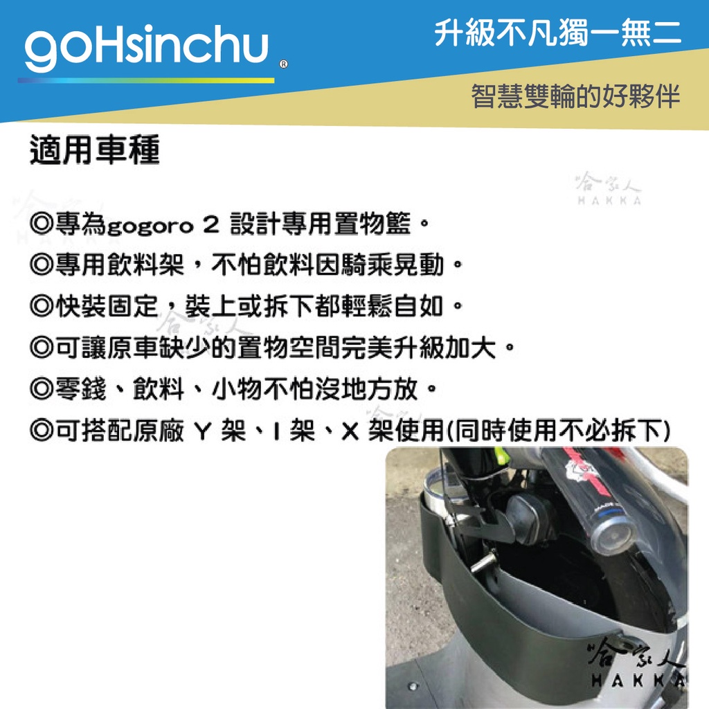 GOGORO 2 專用置物籃 收納置物箱 超大空間 前置物 置物網 置物袋 飲料架 Y架 置物箱 GOGORO2 哈家人