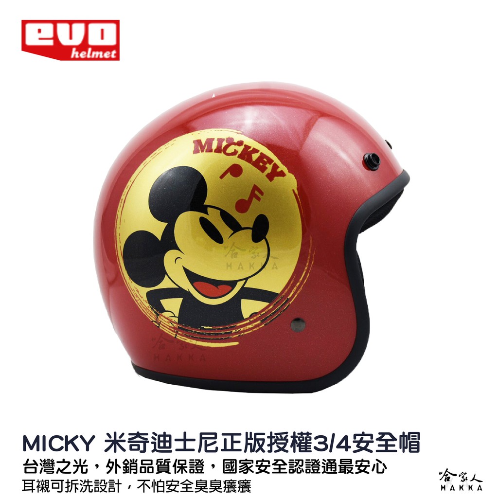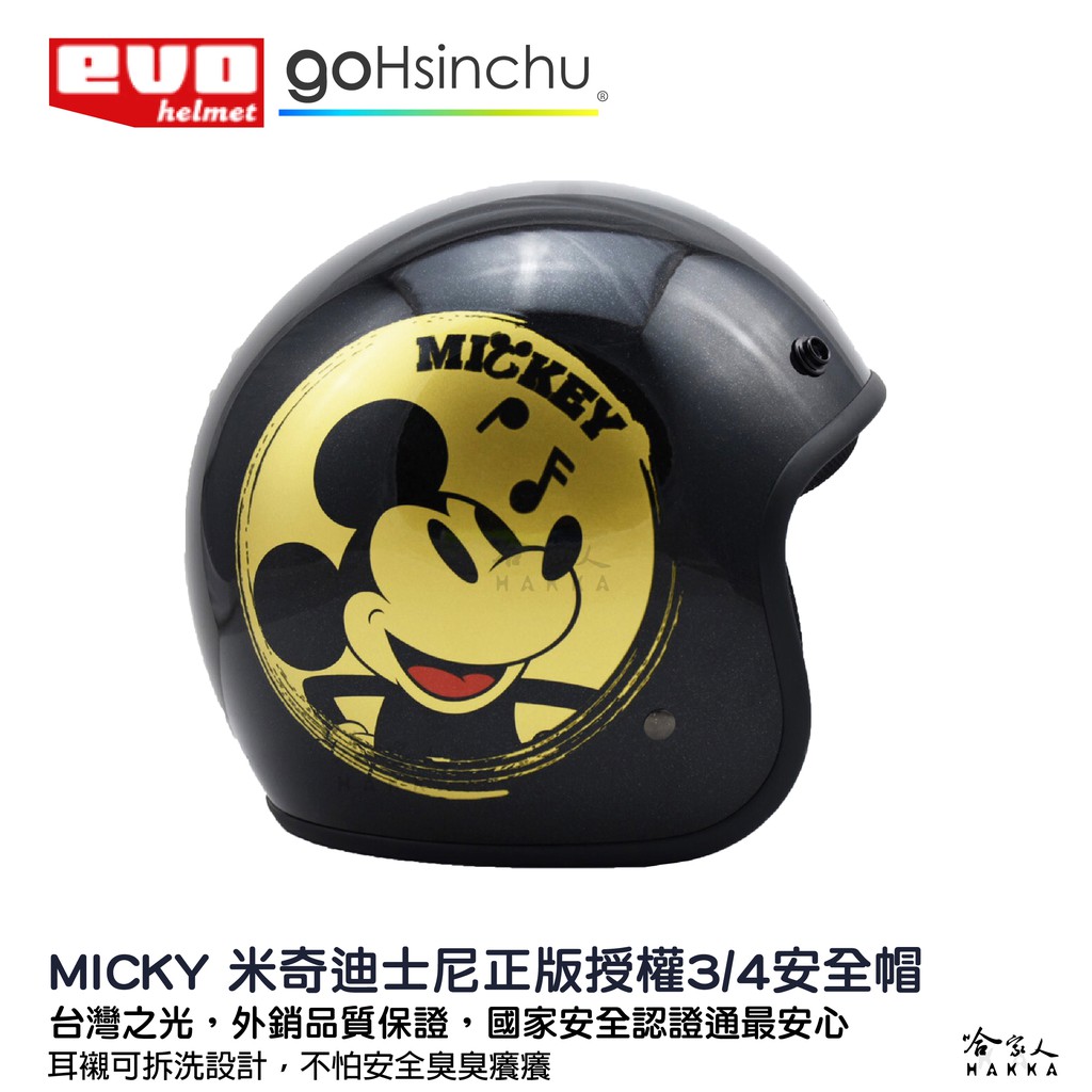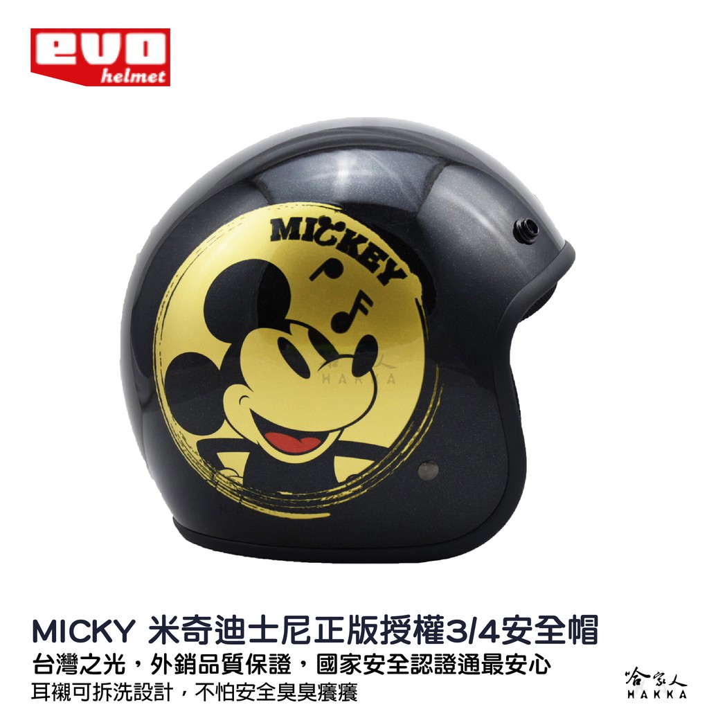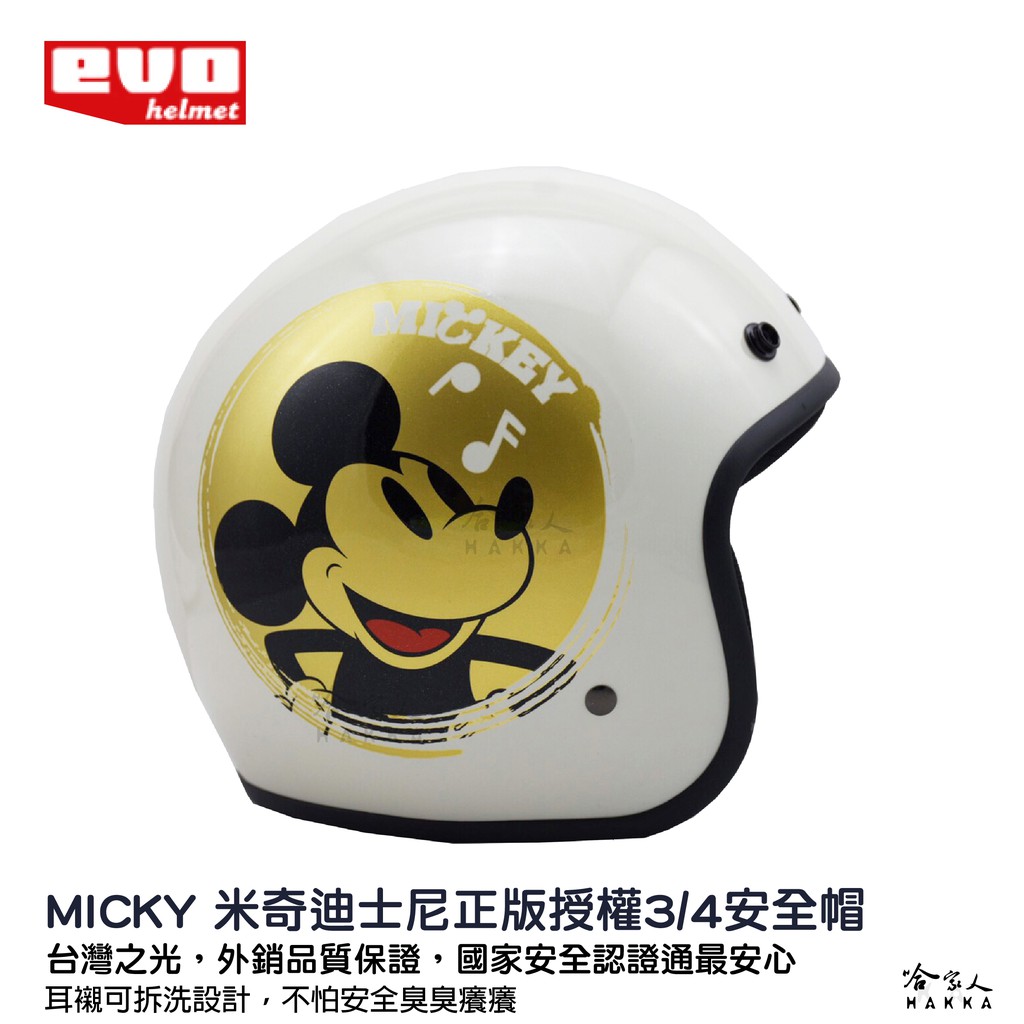EVO 米奇 正版授權安全帽 現貨 復古金米奇 迪士尼 3/4 半罩 Mickey 迪士尼 騎士帽 哈家人