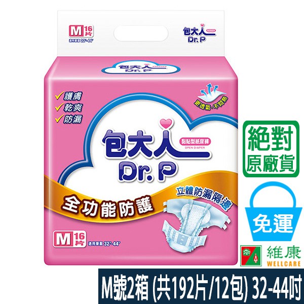 包大人 全功能防護成人紙尿褲 M號_2箱 (共192片/12包)_(加贈-包大人濕巾2包) 維康