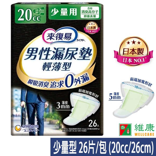 來復易 男性漏尿專用棉墊_少量型_20cc/26cm (26片/包) 維康