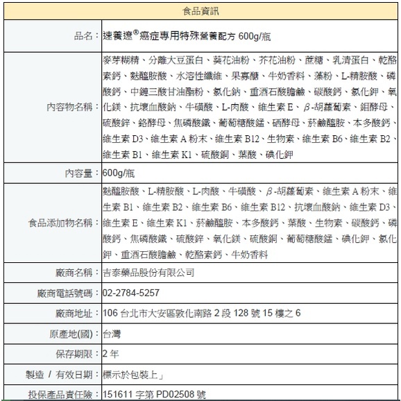 吉泰 Sympt-X® 速養遼_癌症專用特殊營養配方 (600g/瓶) 維康