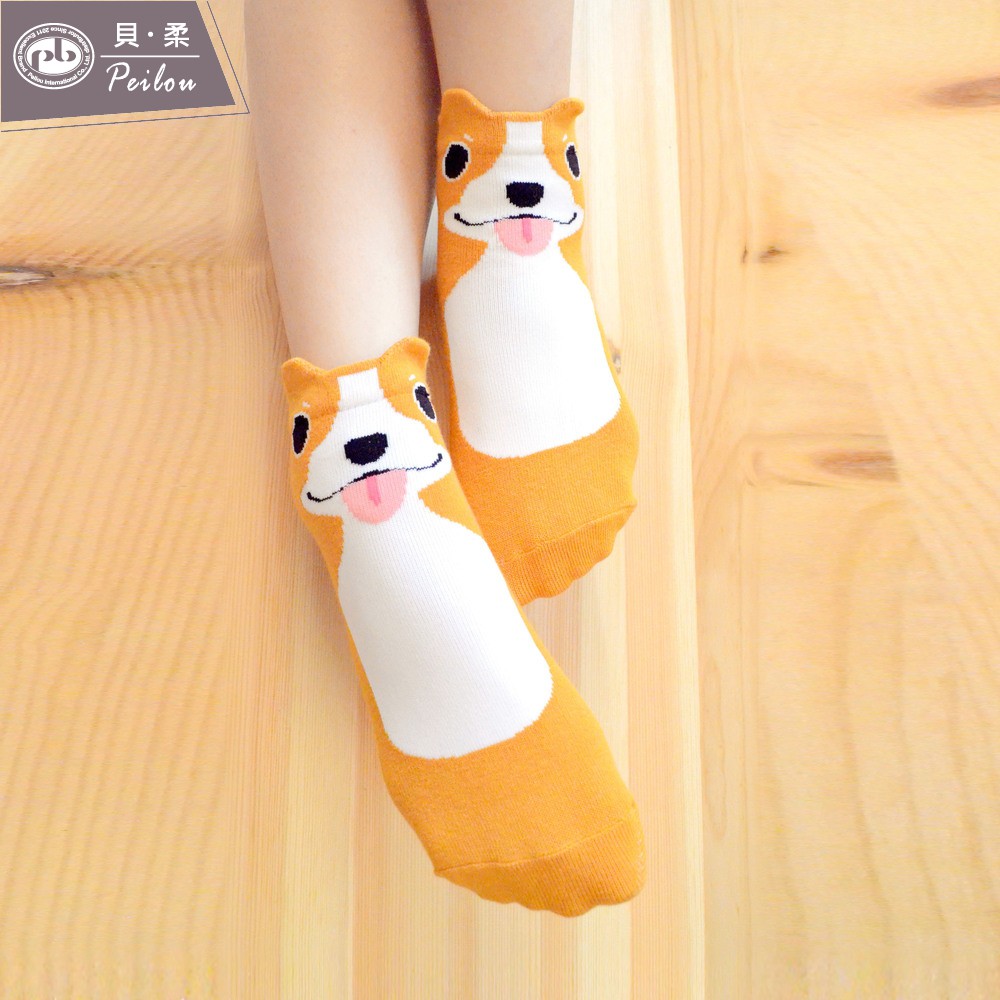 貝柔趣味立體止滑童短襪-柴犬(單雙)