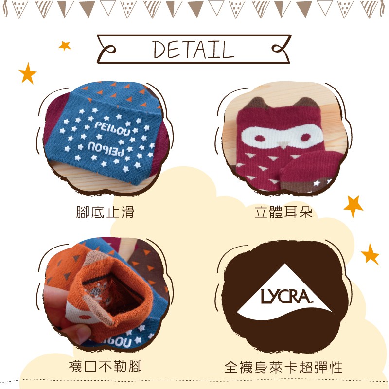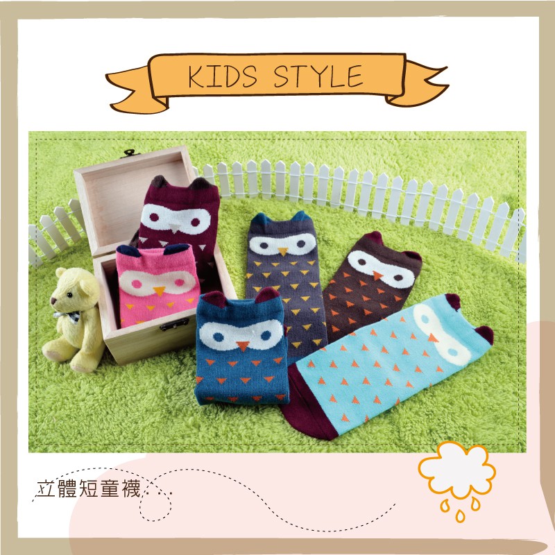 貝柔趣味立體止滑童短襪-貓頭鷹(單雙)