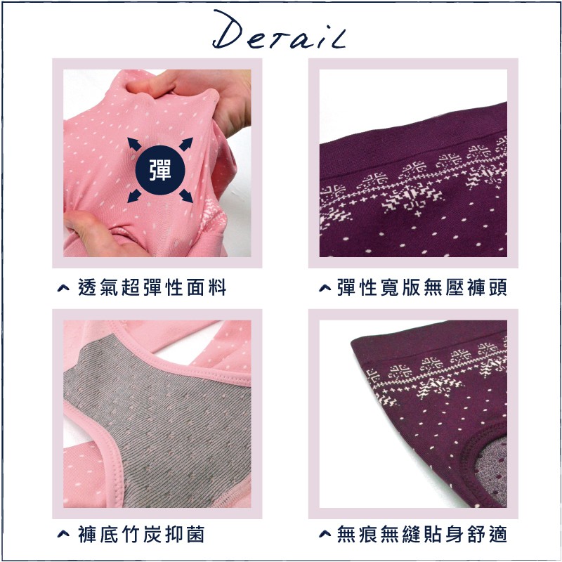 Peilou 貝柔竹炭抗菌無縫三角褲_圖騰(中腰-6色可選)