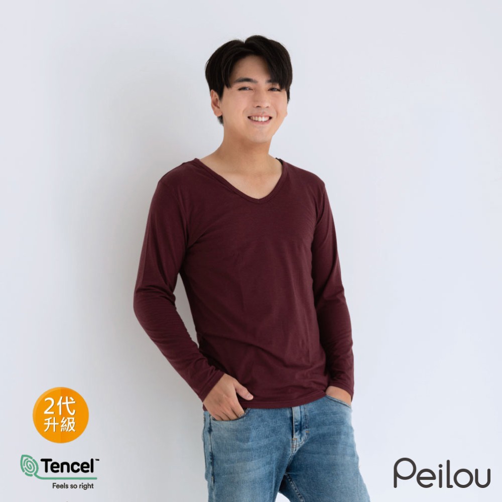 貝柔Tencel機能保暖發熱衣_男V領(酒紅) 機能衣|保暖衣|發熱衣