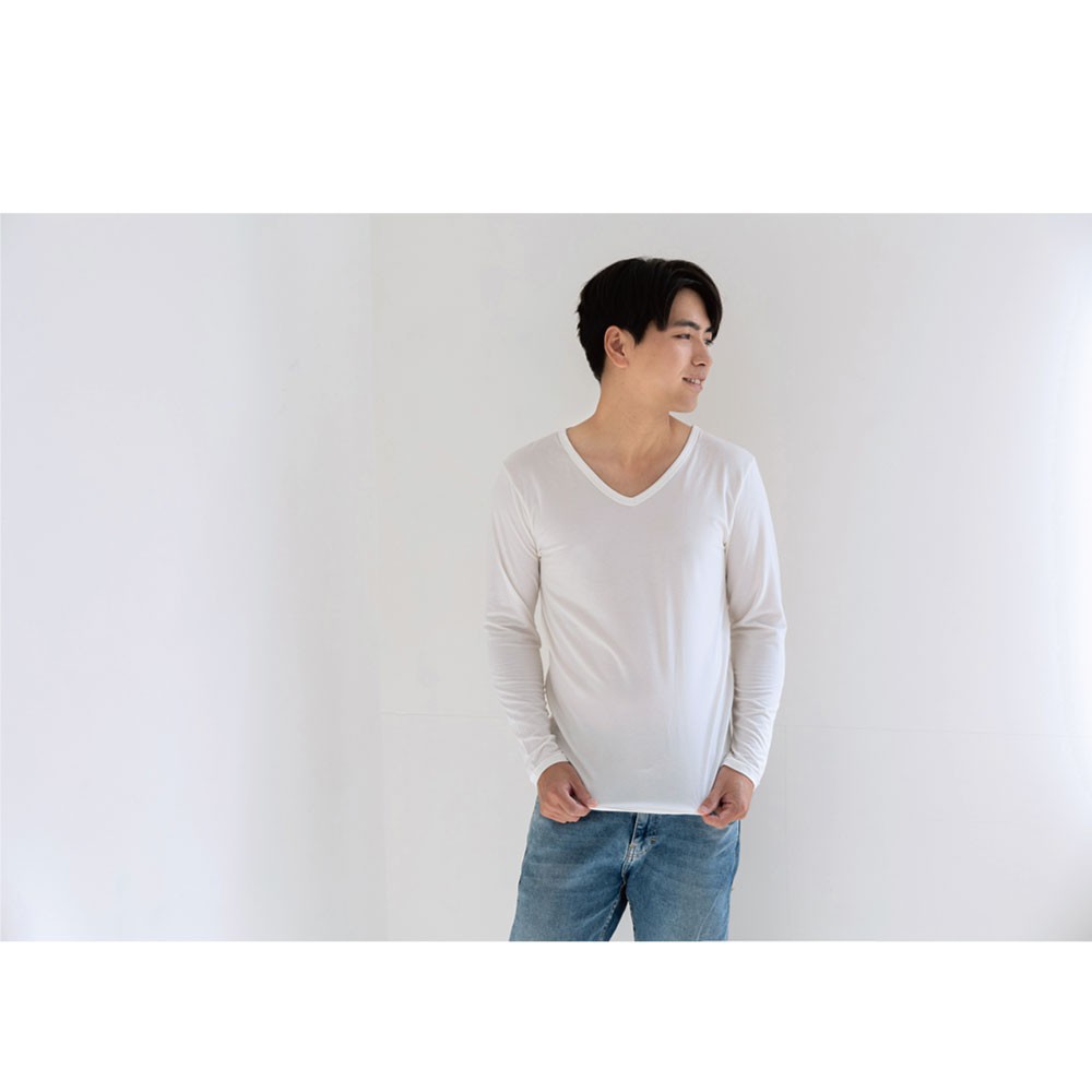 貝柔Tencel機能保暖發熱衣_男V領(白色) 機能衣|保暖衣|發熱衣