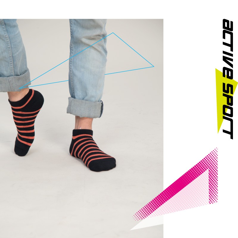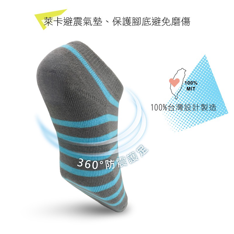 貝柔條紋萊卡防震護足氣墊船型襪(6入組)_男
