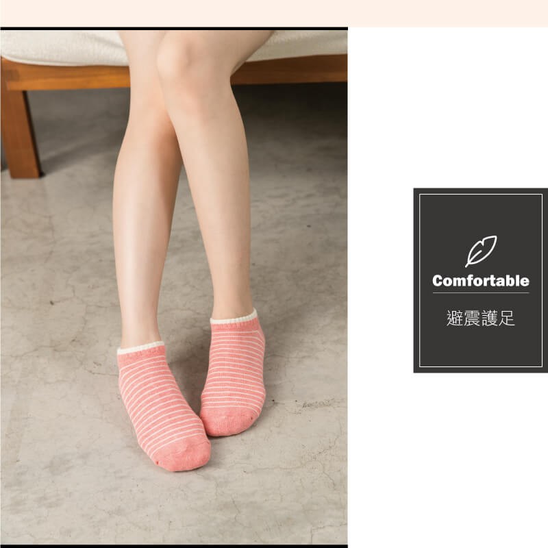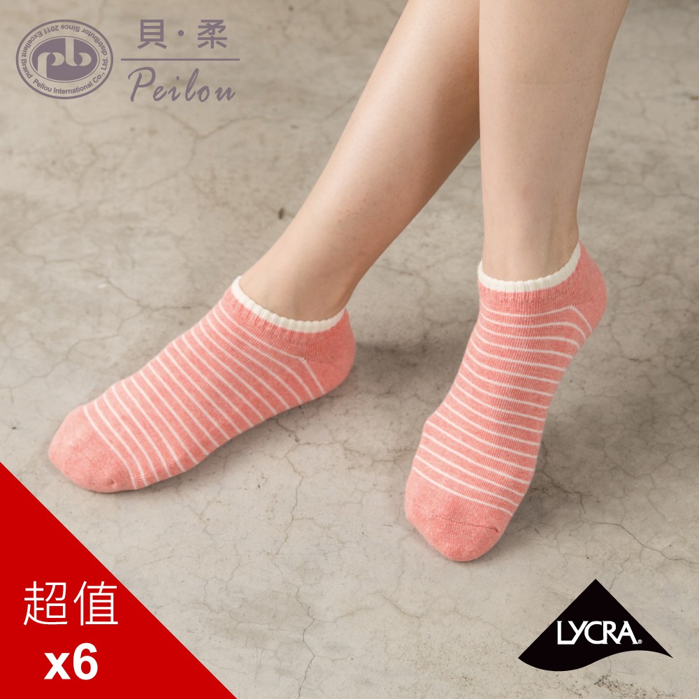 貝柔萊卡麻花氣墊襪-條紋船型(6雙組)
