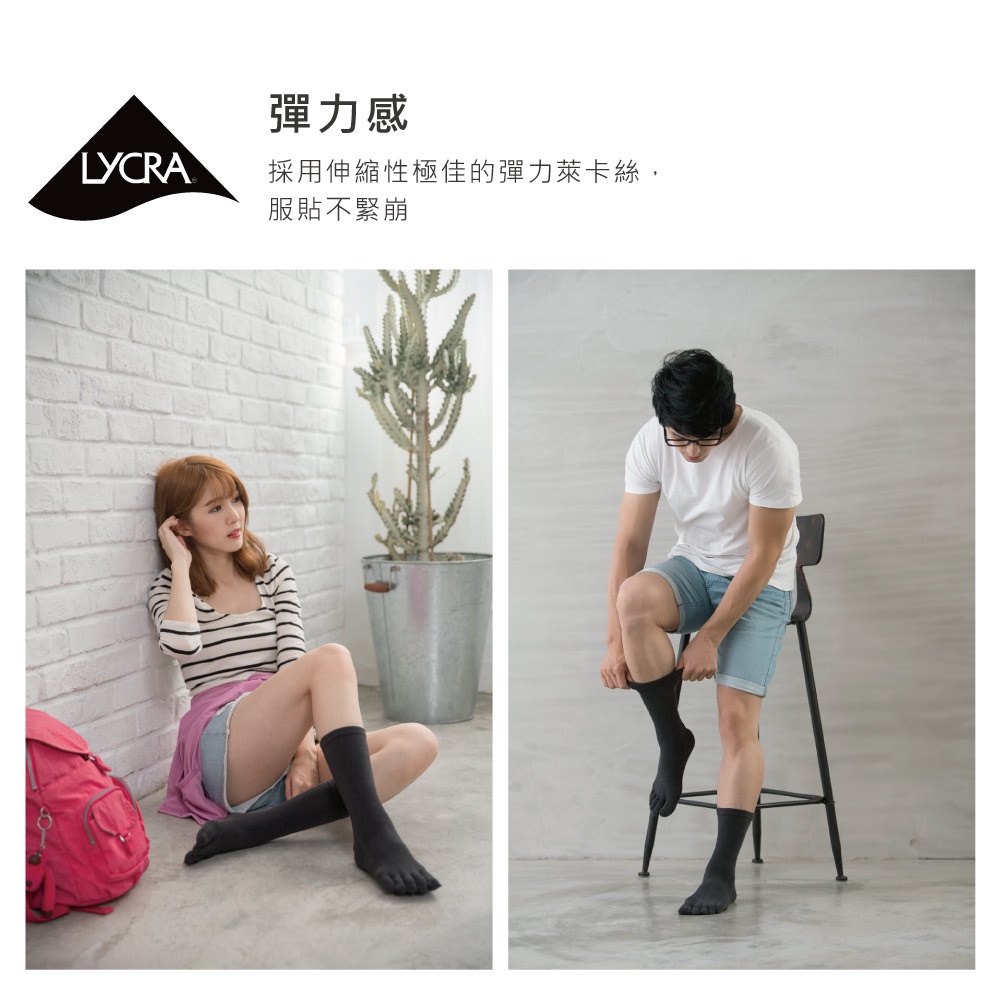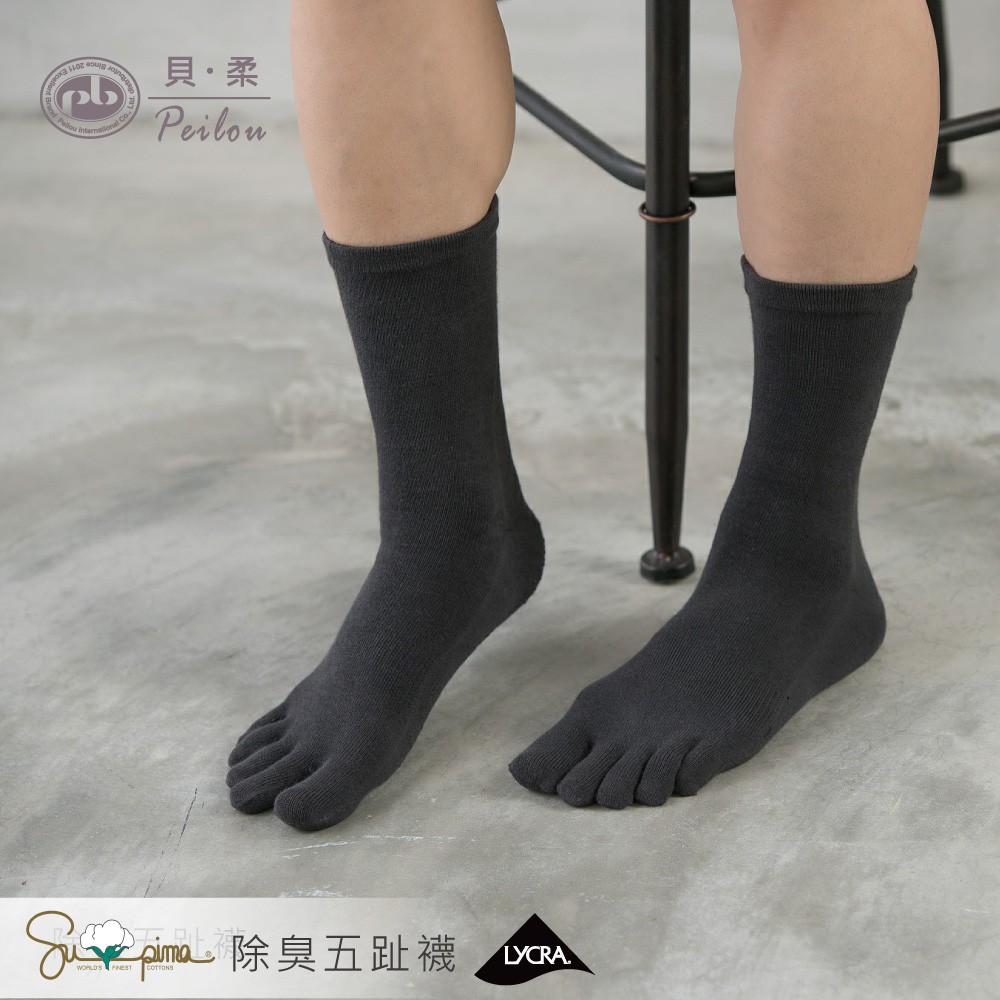 貝柔Supima抗菌萊卡除臭襪-五趾長襪(男)