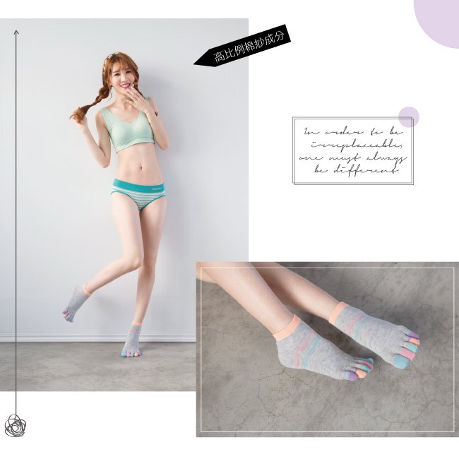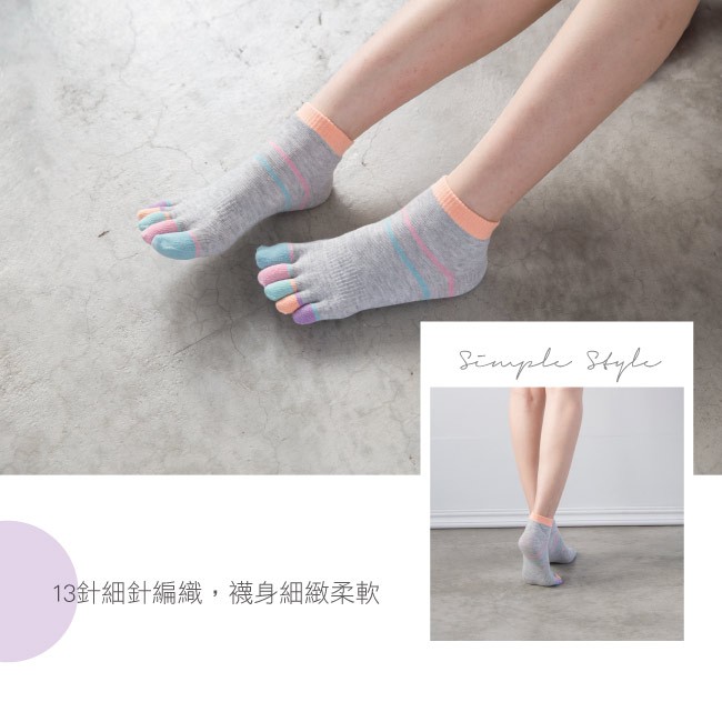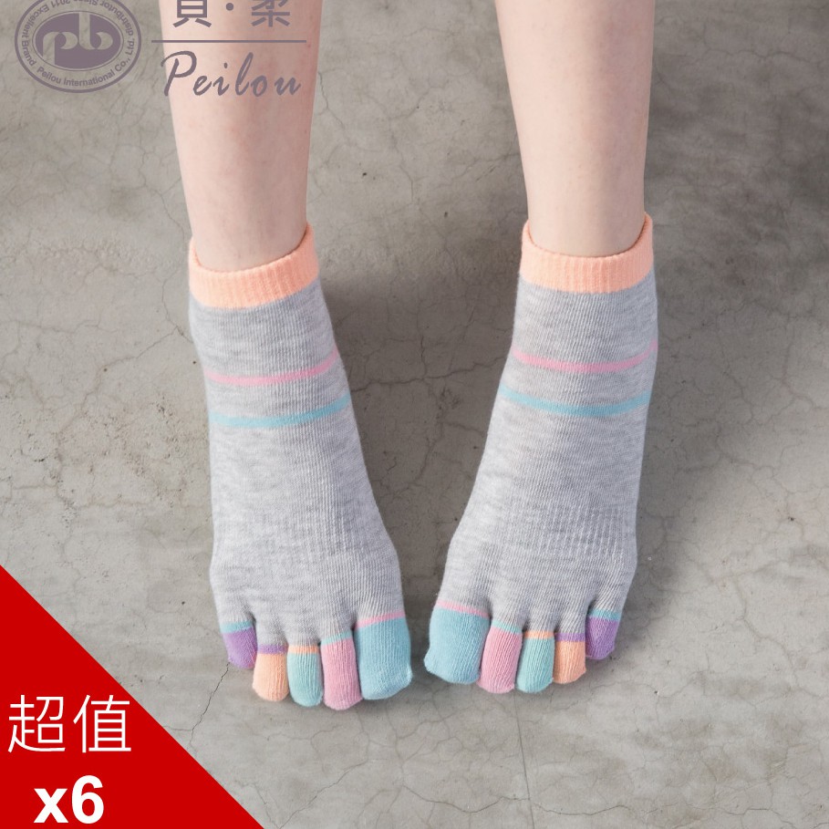 貝柔柔棉乾爽抑菌五趾短襪-繽紛(6雙組)