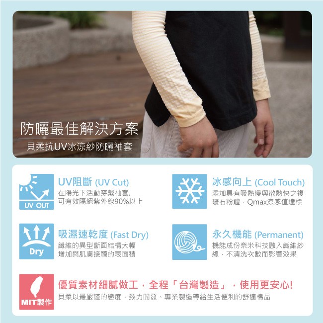 貝柔抗UV涼感防蚊萊卡袖套_兒童(5色可選)