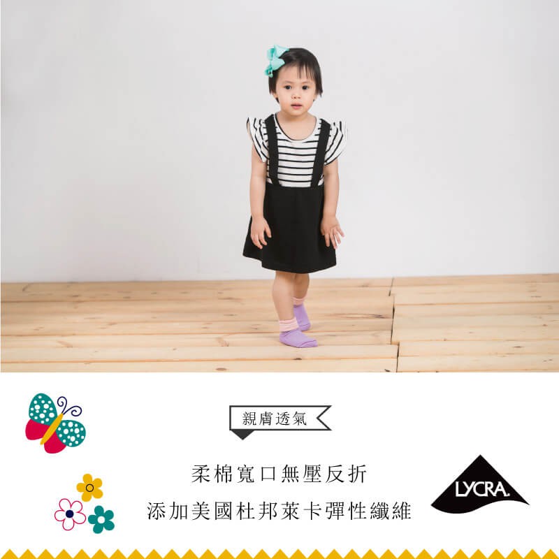 貝柔兒童萊卡柔棉止滑寬口短襪-女(3雙組)