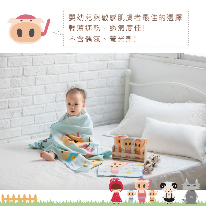 貝柔童話純棉抗菌紗布童巾_三小豬