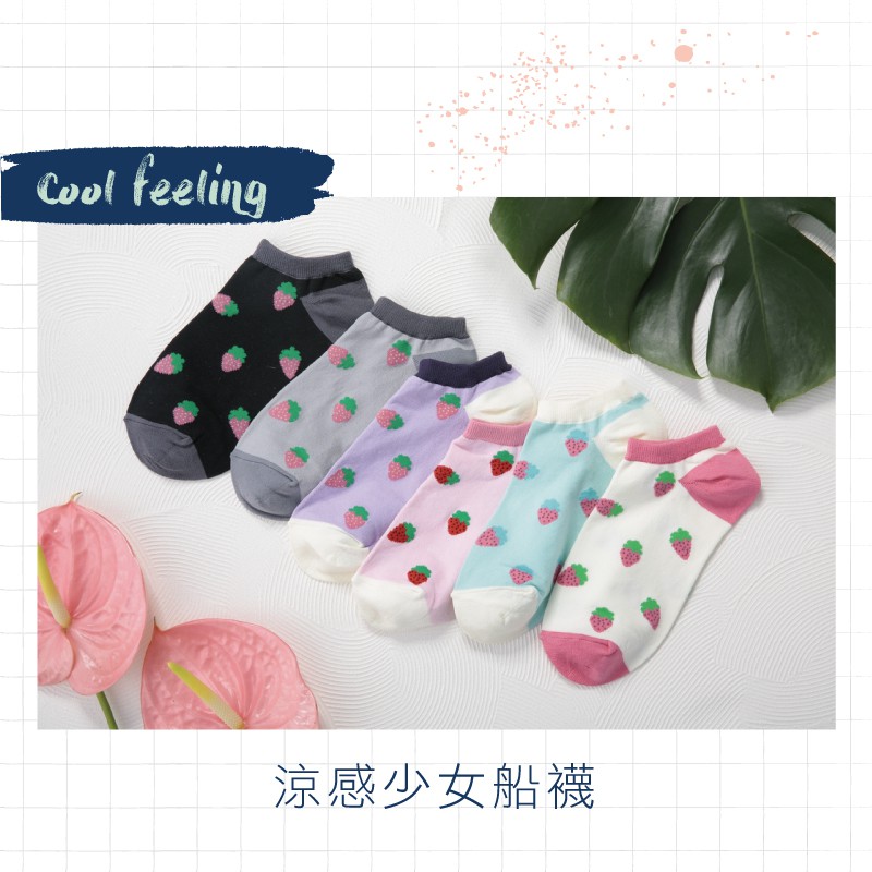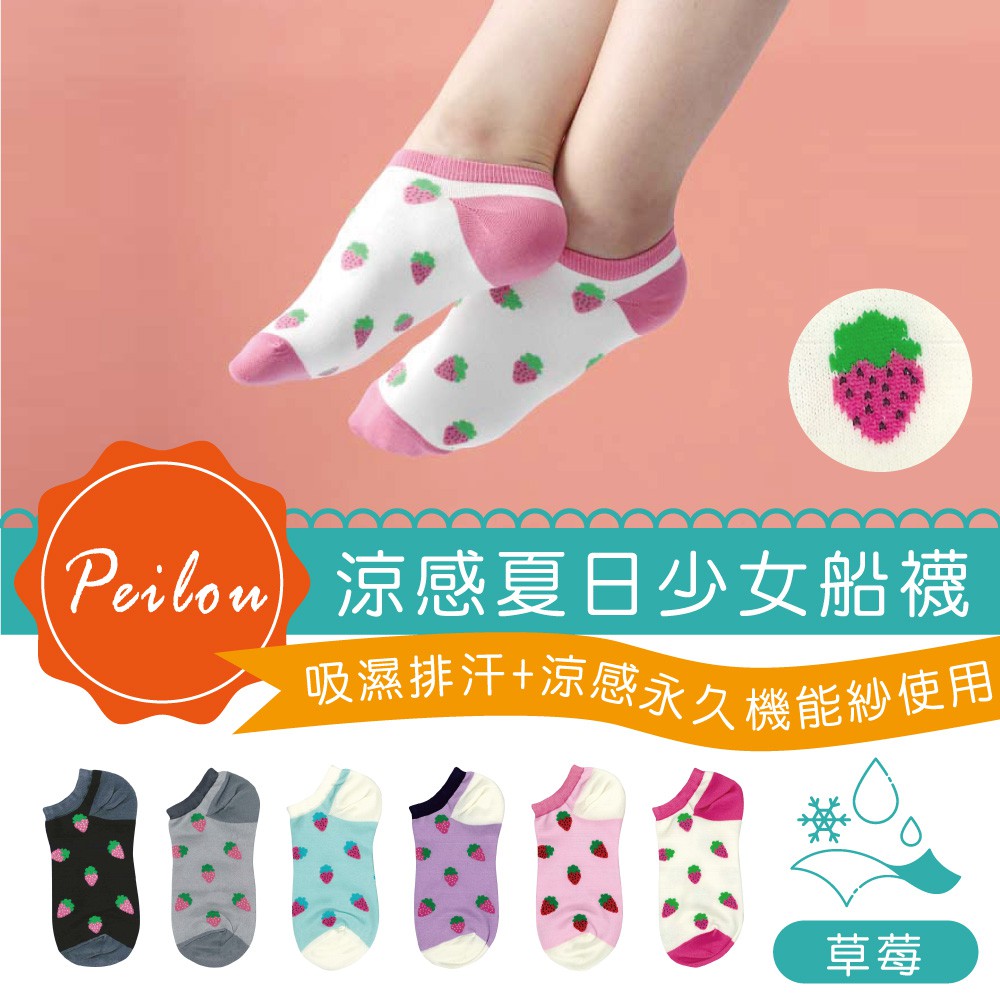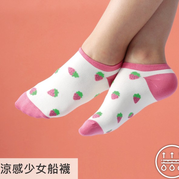貝柔涼感夏日少女船襪-草莓