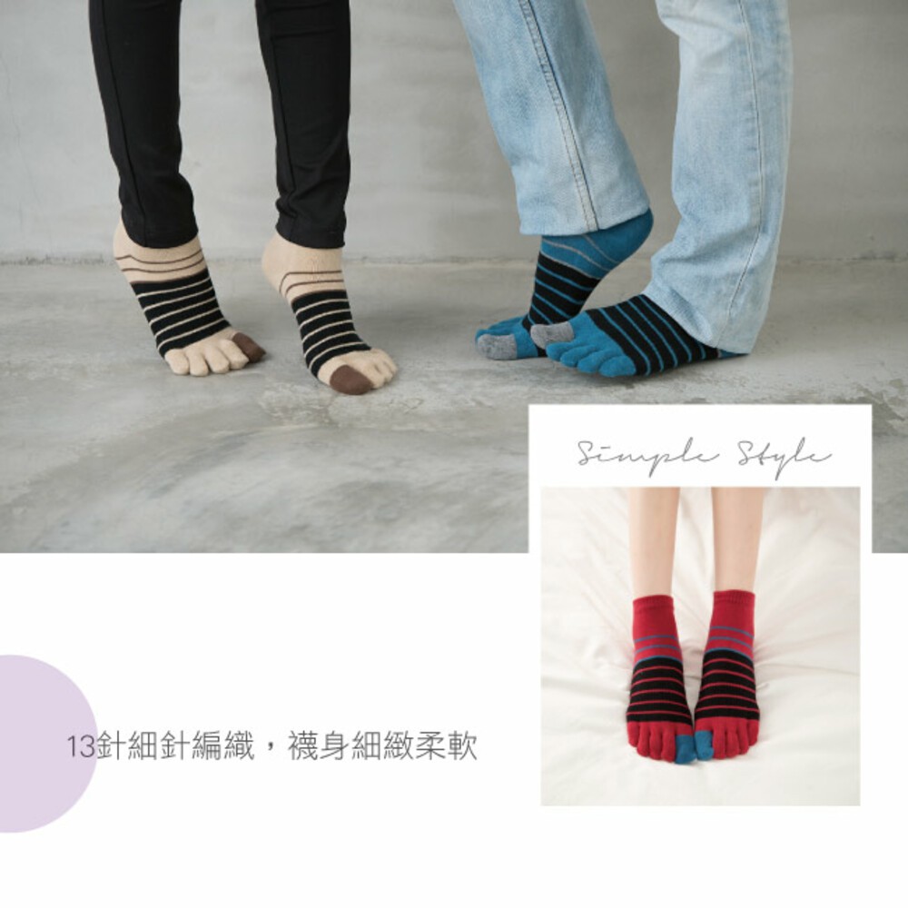 貝柔 柔棉乾爽抑菌五趾短襪-條紋(單雙)