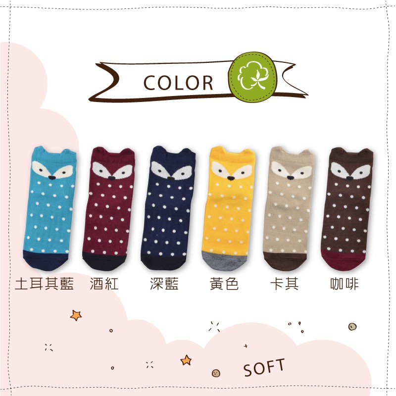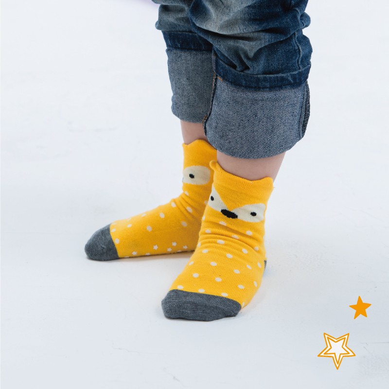 貝柔趣味立體止滑童短襪-點點狐狸(單雙)
