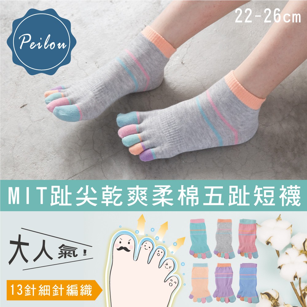 貝柔柔棉乾爽抑菌五趾短襪-繽紛[單雙]