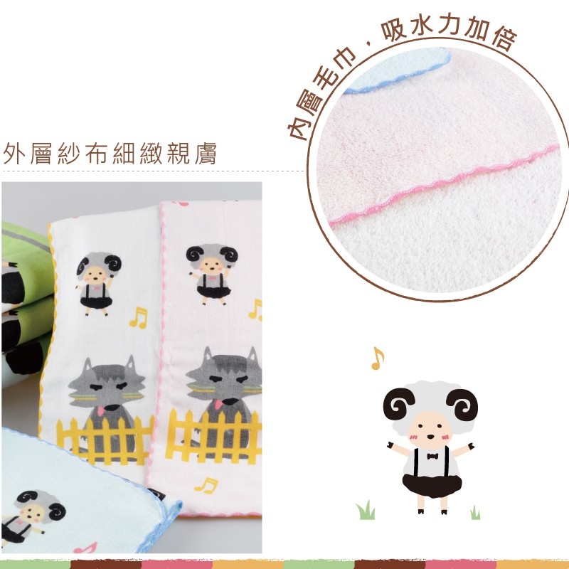 貝柔童話純棉抗菌紗布童巾_小紅帽/三小豬/七小羊(3款單入組)