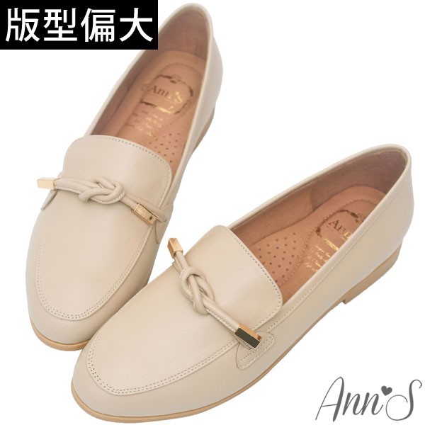 Ann’S知性文藝-雙結柔軟綿羊皮樂福平底鞋-杏(版型偏大)