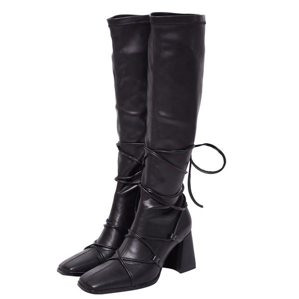 ANNSTAR詩亞SA聯名-辣妹的綁帶造型及膝長靴7.5cm-黑