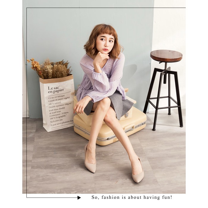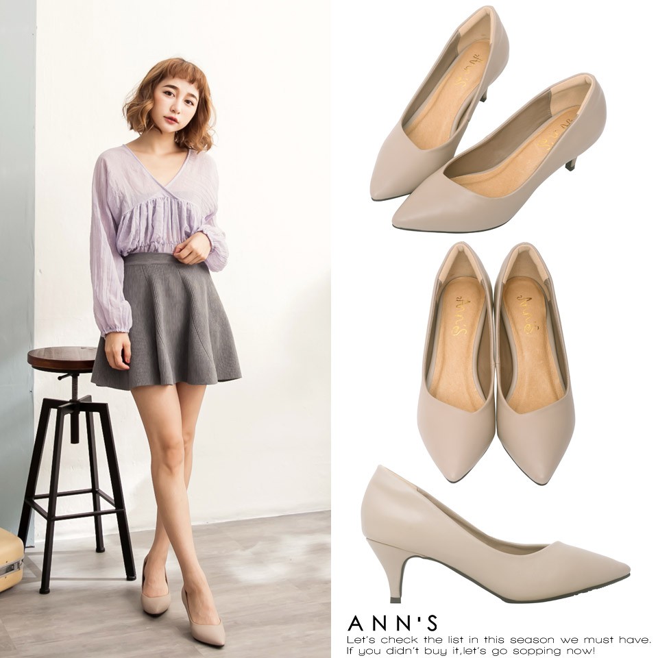 Ann’S漫步華爾滋-素色品味斜口低跟舒適尖頭鞋-杏