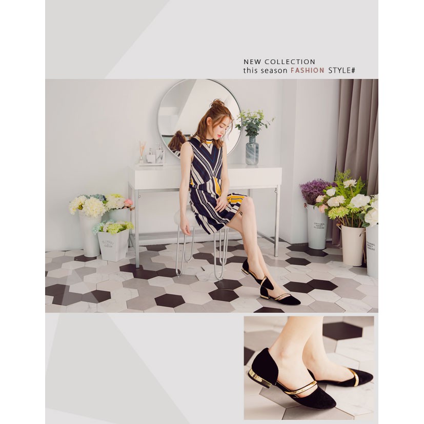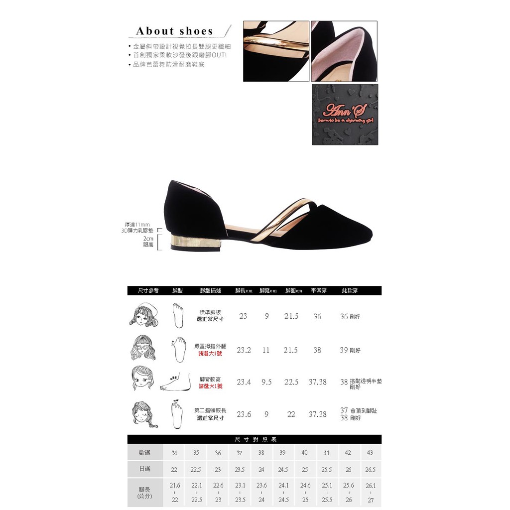 Ann’S名媛氣質-金色斜帶側空尖頭鞋 黑