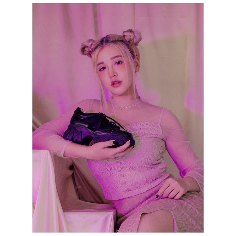 ANNSTAR波痞Poppy聯名-365天都想穿的拼接輕量老爹鞋6cm-黑(版型偏小)
