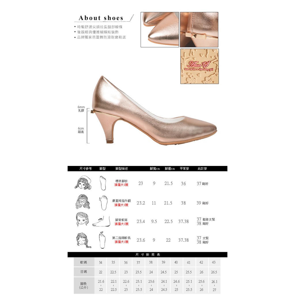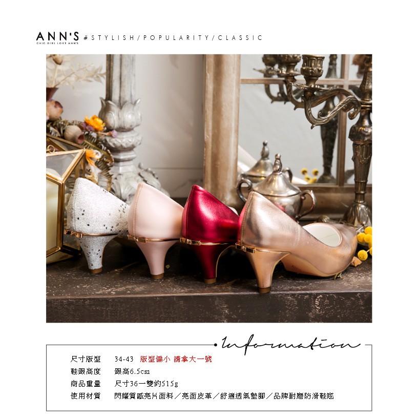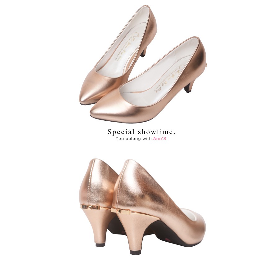 Ann’S金屬色調後跟金立體小蝴蝶尖頭低跟包鞋-玫瑰金