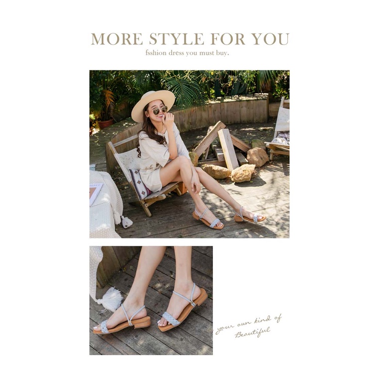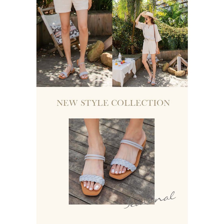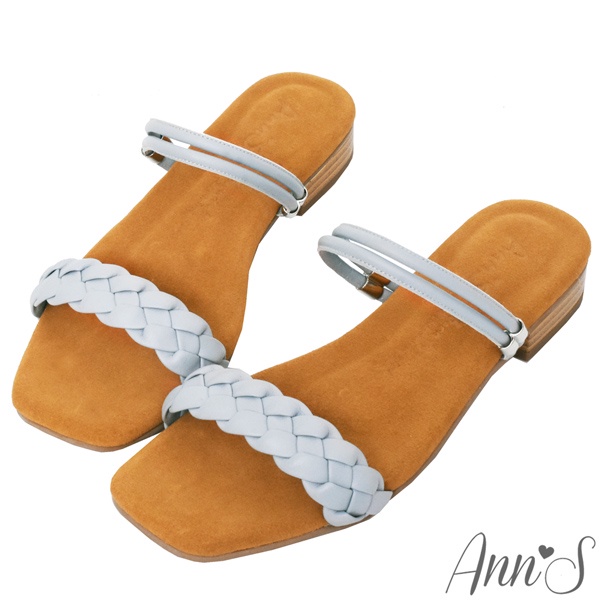 Ann’S水洗牛皮-前編織帶兩穿木紋跟方頭涼鞋-藍