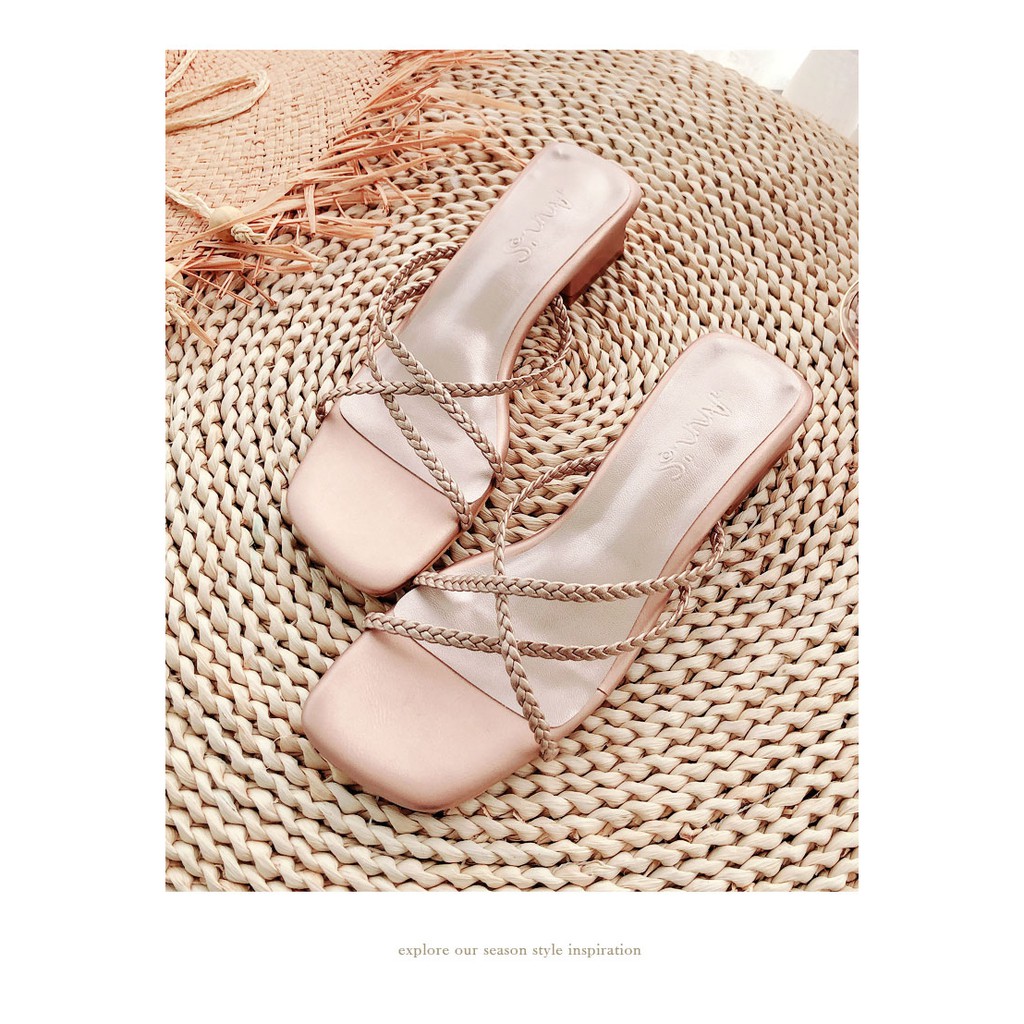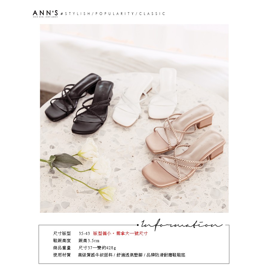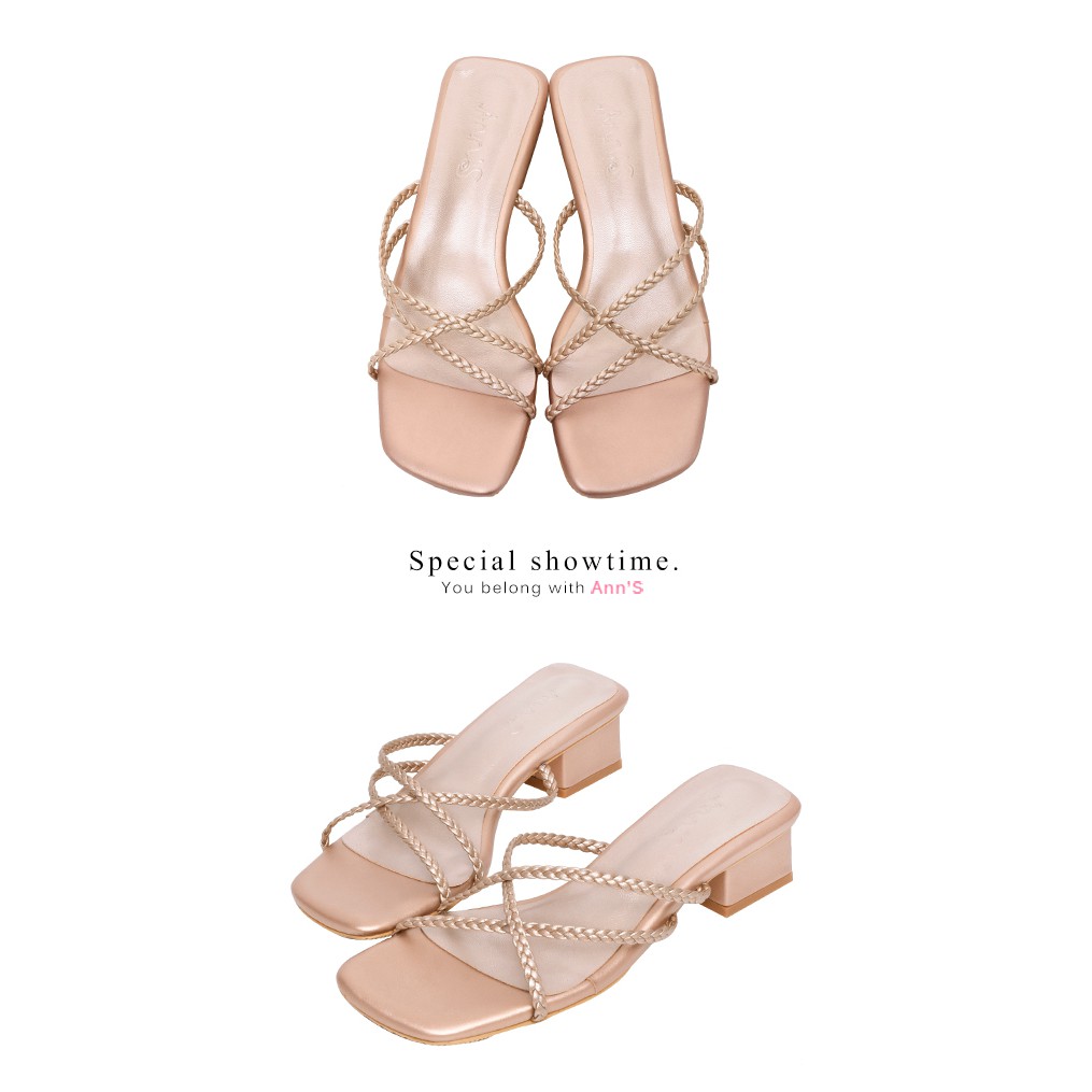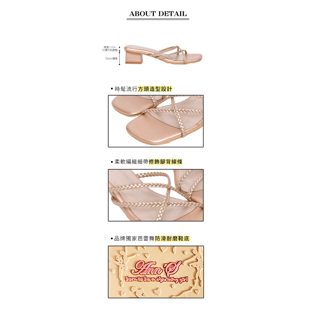 Ann’S素面編織細帶方頭粗跟涼拖鞋3.5cm-玫瑰金(版型偏小)