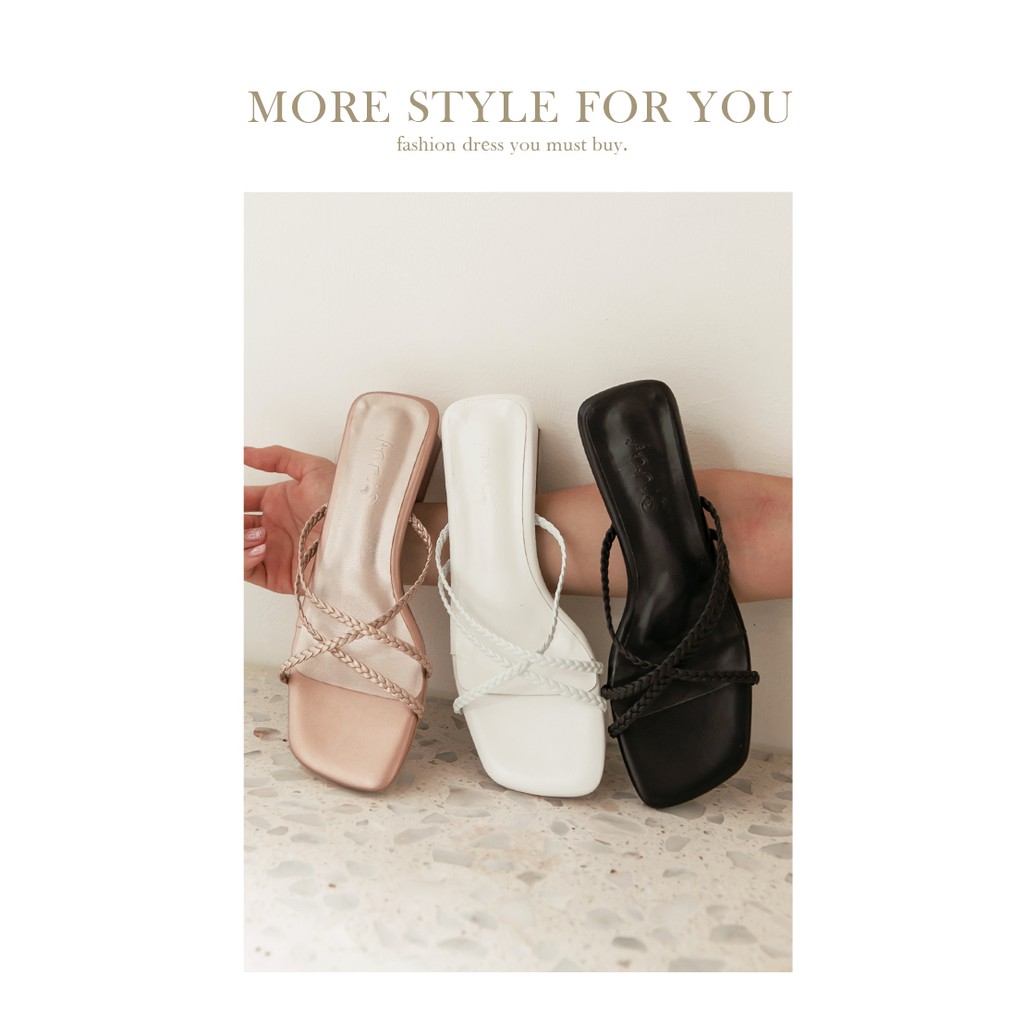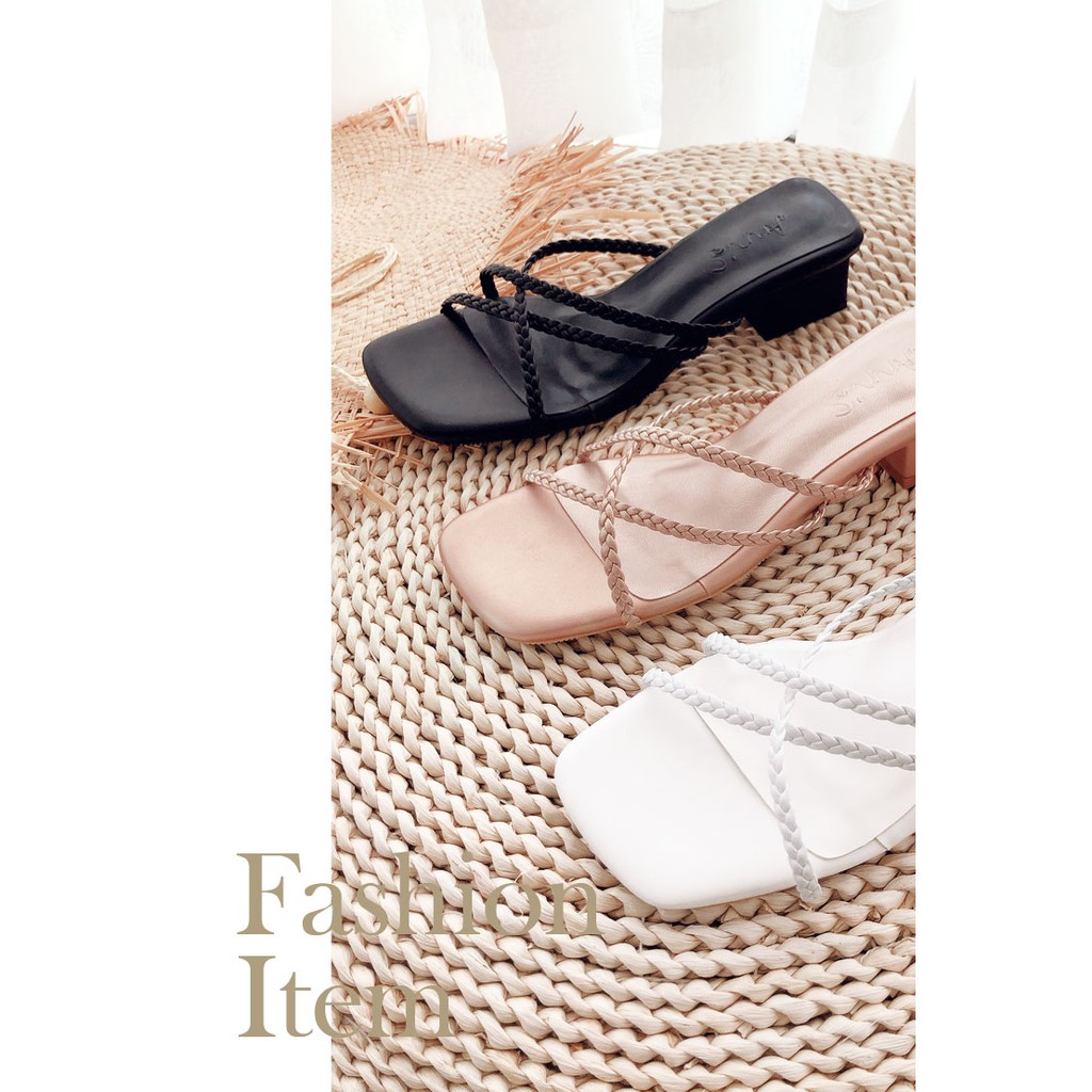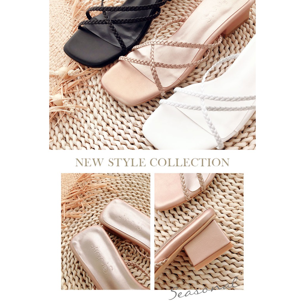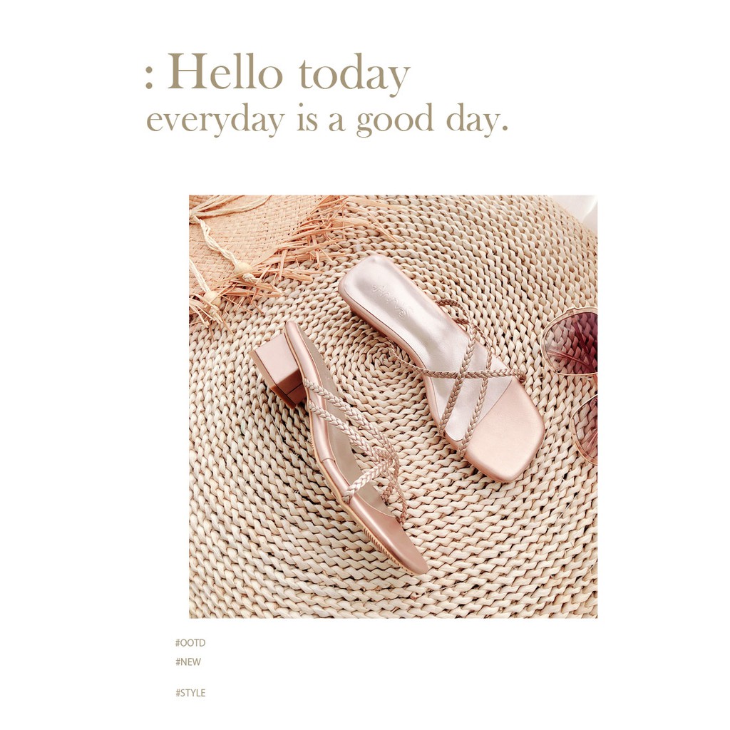 Ann’S素面編織細帶方頭粗跟涼拖鞋3.5cm-玫瑰金(版型偏小)