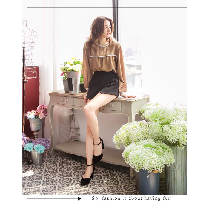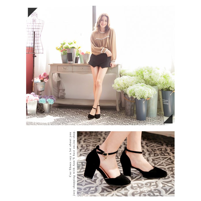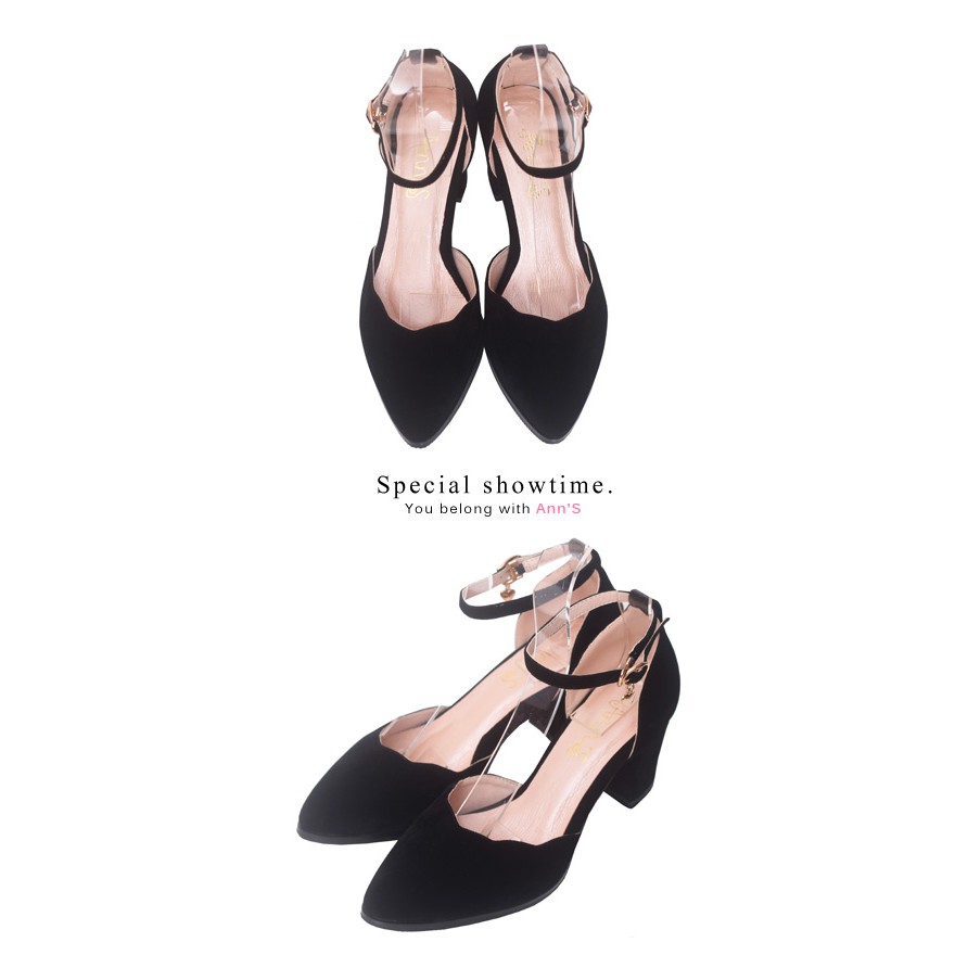 Ann’S戀愛夢遊-金色小愛心吊飾甜美波浪繫帶粗跟鞋-黑