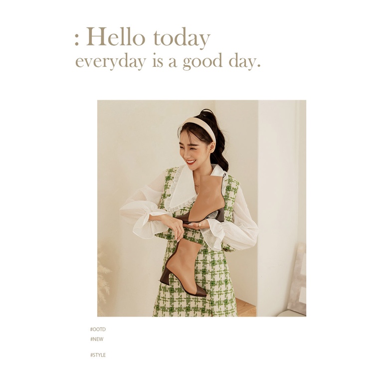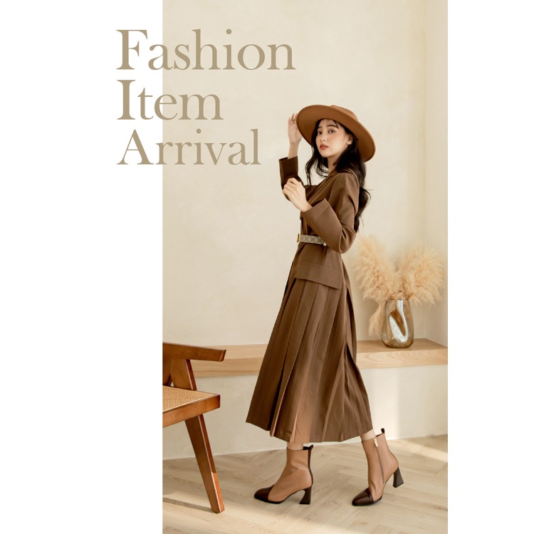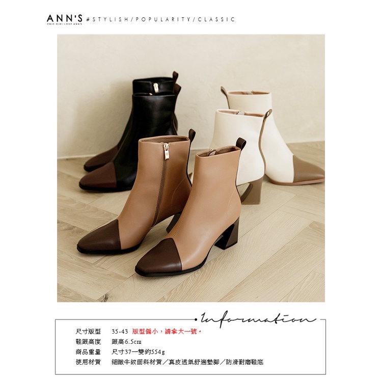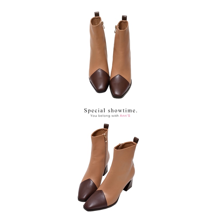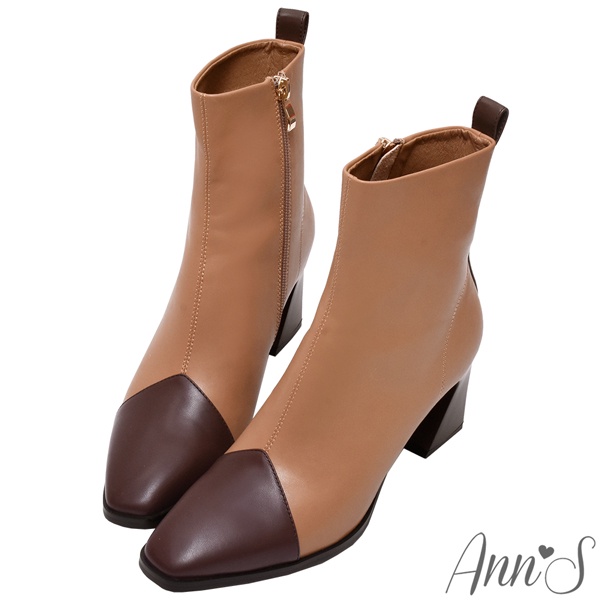 Ann’S高段位時尚-拼接色造型鞋根方頭短靴6.5cm-咖杏(版型偏小)