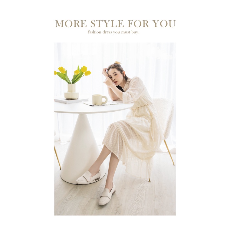 Ann’S堅持好穿-寬帶金色D扣全真皮小羊皮樂福鞋-米白