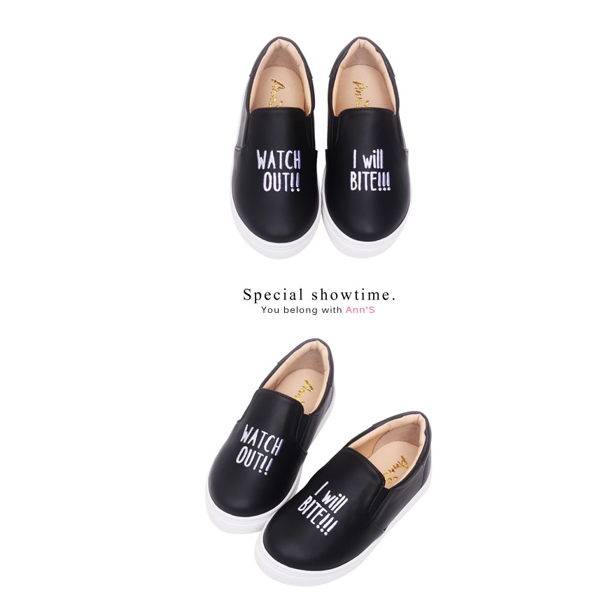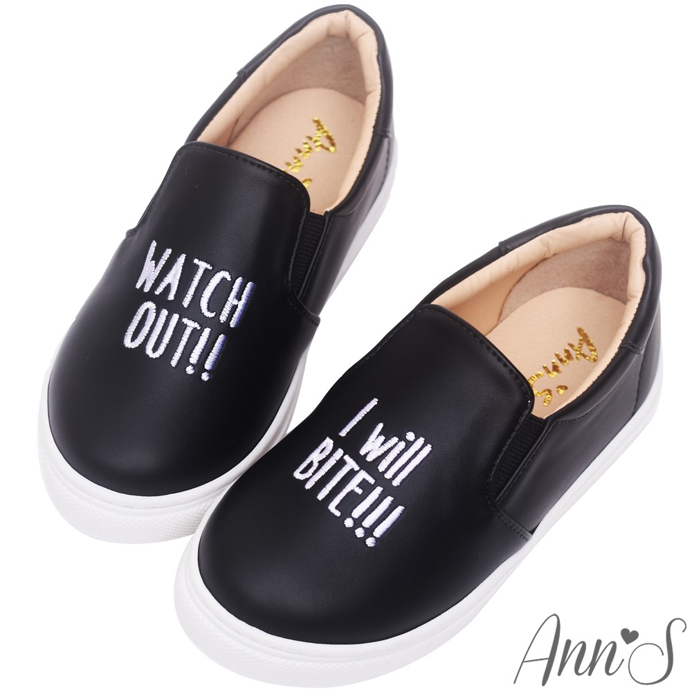Ann’S親子系列-升級超舒適英文刺繡懶人鞋-黑