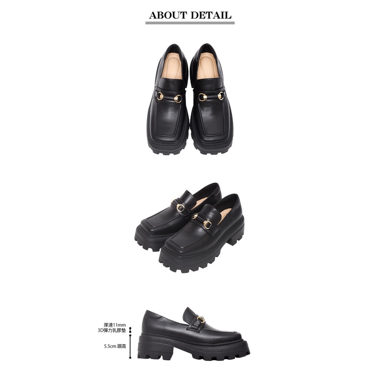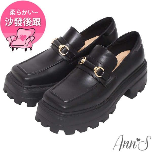 Ann’S學院個性風-顯瘦厚底方頭樂福鞋5.5cm-黑
