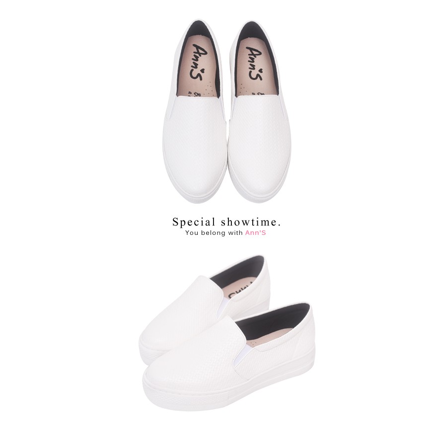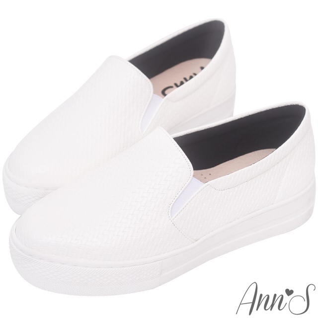 Ann’S進化2.0時髦編織紋足弓墊腳顯瘦厚底懶人鞋-白