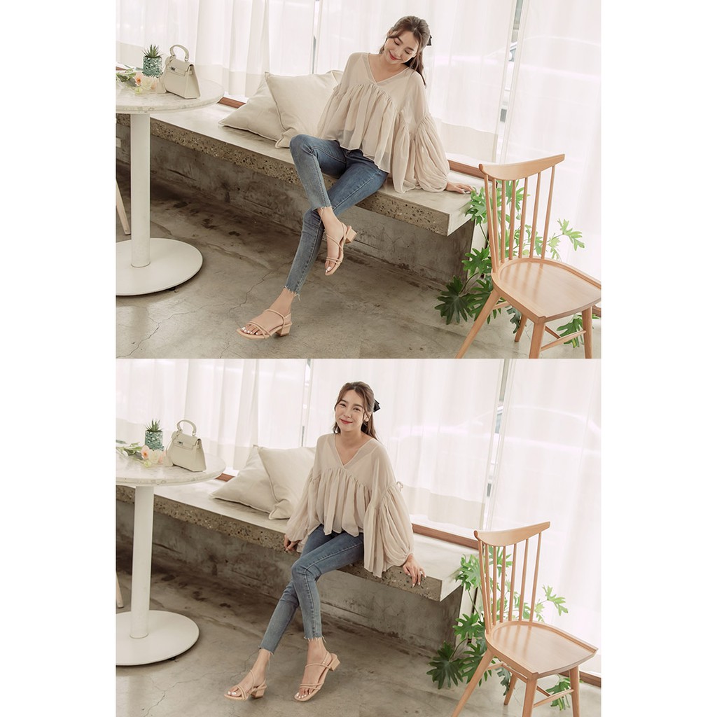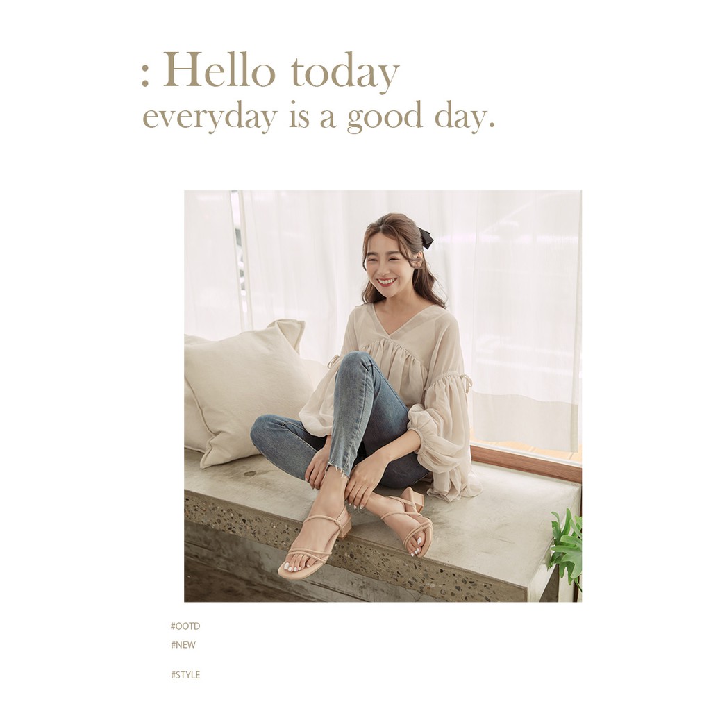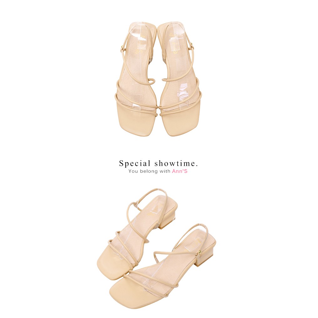 Ann’S舒適圓條顯瘦V曲線方頭粗跟涼鞋3.5cm-杏