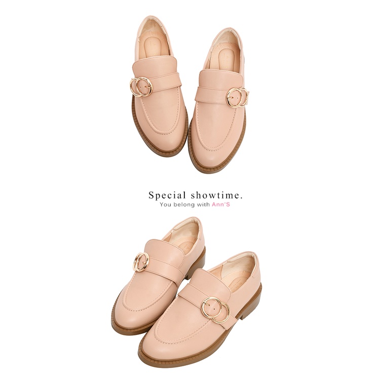 Ann’S肉肉腳必備-自由調節鬆緊金圓扣舒適樂福鞋3cm-杏