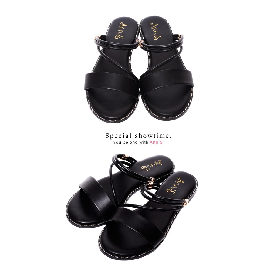 Ann’S舒適寬版小水鑽2way平底涼鞋-黑