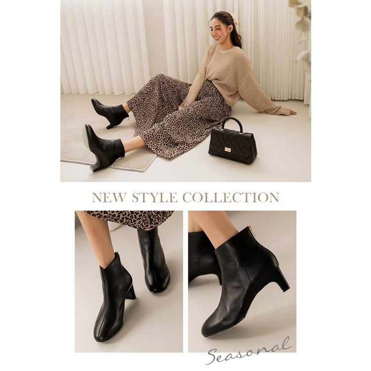 Ann’S完美版型-全真皮扁跟圓頭短靴5cm-黑(版型偏小)