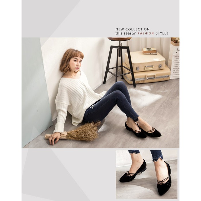 Ann’S恣意優雅-造型交叉鬆緊平底尖頭鞋-黑