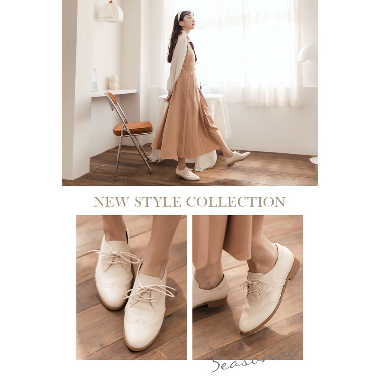 Ann’S散發好印象-雕花綁帶小羊皮全真皮牛津鞋-米白