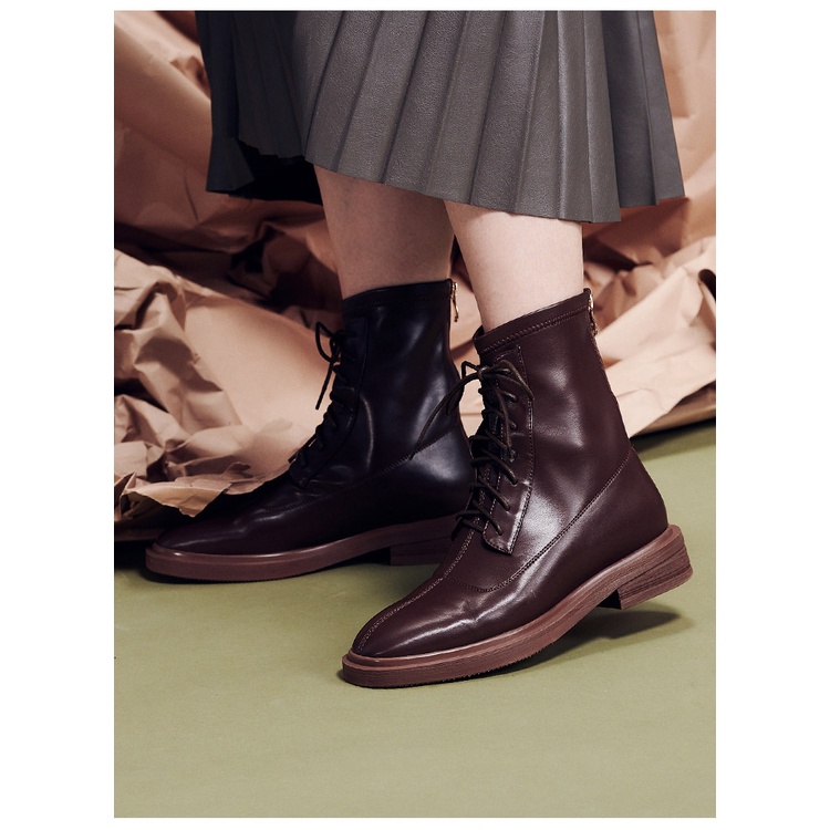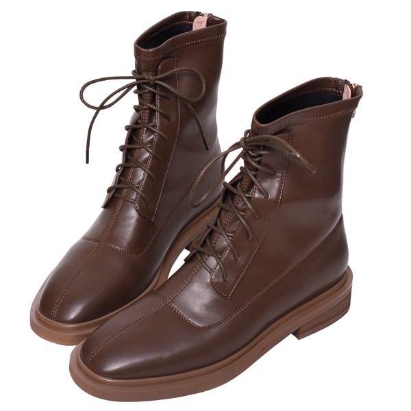 ANNSTAR丹妮婊姐聯名-免綁帶帥妹平底短靴3cm-深咖